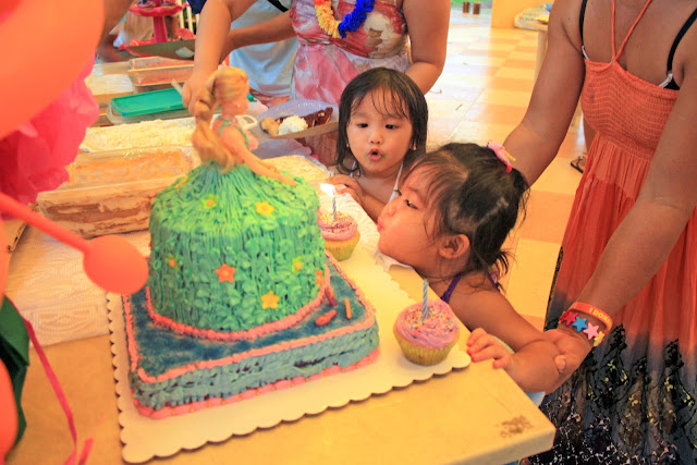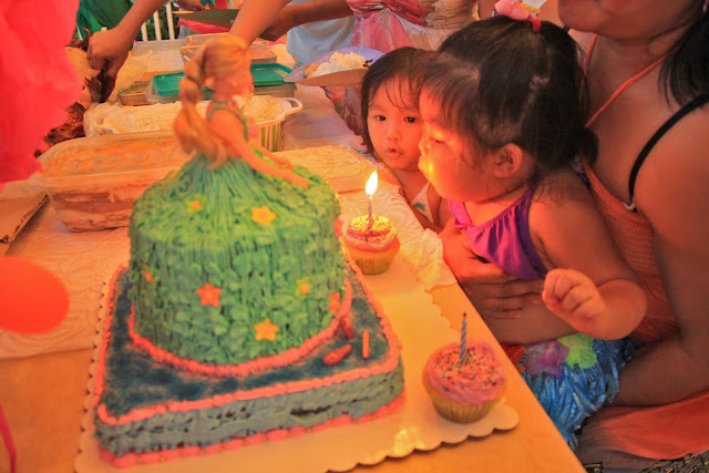 Anyway, to summed up this week's activities, we celebrated her birthday last August 16, 2012 and I was so happy that my cake and cupcakes turned out great! The first layer is chocolate and the 2nd and 3rd layer which was her dress are lemon pound cakes. I adapted all the recipes from Martha Stewart. I find her cakes very yummy and easy to make. I was supposed to make some cake pops too but my time is short since I have the task not only to bake her cake but also to decorate the venue. OMG! I can feel my energy drained that day since I did not have that much sleep for the last 3 days. But thank God! everything is perfect and done wonderfully. Here are the photos from her birthday party.