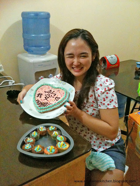I made mini cupcakes out of the remaining batter and decorate it with thinly sliced lemons and candy sprinkles. By the way, I really love this non-stick heart-shaped cake pan by Sharon Cuneta. It's truly a good buy and very affordable. It's better than Kris Aquino's bakewares.
