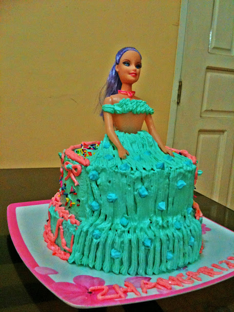 - Weird right? I originally made this cake for my Grandma and she didn't get to taste it because I didn't sent it. I just ordered a doll cake to my friend 'coz she lives near to my grandma's house. By the way, I live 19 hours away from my grandma. My friends just ate it to celebrate my Grandma's 77th birthday. I hope and pray God will bless her more years to come into her life because we, her family really love her.