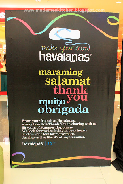 Yesterday,September 15, 2012 , I went back to Abreeza Mall where they held the Make Your Own Havaianas event to ask for replacement of my Hava's sole. I went directly to the Customer service area of MYOH and I addressed to them my problem. But before I went there, I equipped myself first with few articles from the Consumer Act Law in case they will invoke the "No Return, No Exchange". So funny right? But Thank God! that customer service woman is very accommodating and helped me all the way through the process of replacement. They let me sign a waiver that I'm only entitled to change it once. Oh! I'm feeling at ease now that I can finally wear my new pair of Havaianas. Thank God! I can sleep well now. I forgive you Mr. Rasta-like man assembler. :)