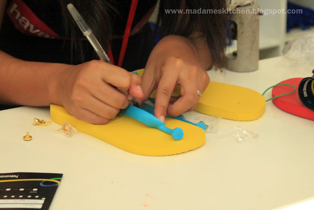 You're not reading it wrong...I'm really disappointed by my new pair since that guy who assembled my Havaianas did not gave me the right sole for my strap. He did not even told me that this strap is not intended for this kind of Havaianas. My strap is for a "top" design and not for the "slim" designs and I just noticed it when I got home. Now I know why I'm not comfortable by just looking at my new pair. That assembler is totally absent minded. I guess he's new to this thing or he's just born that way...grrrrrr...I'm totally pissed off! I'm not new to this MYOH thing since I've been attending this before when I was still residing at Cagayan de Oro. The difference also in MYOH in CdeO and Davao, the former was more exciting, have friendly assemblers, and more attendees while the latter is so serious, almost all of the assemblers are clueless of what they are doing, grumpy and their opening day is so so slow plus not to mention there's no cocktail or snacks served. (What the heck?). I'm really really sad today...I don't know what I'm supposed to do with my new pair but I came out of an idea.