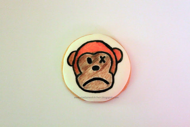 Sad face monkey painted cookie