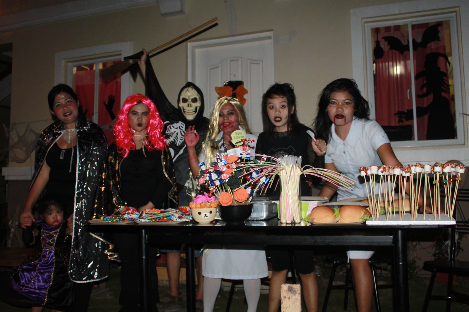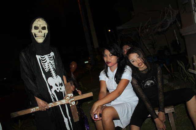 I'm not kidding! This is my first Halloween Celebration ever!!! The reason behind is Filipinos don't celebrate this holiday and as a Catholic nation, dressing as monsters, witch, wizard, etc. is strongly opposed for devout Catholics. If only Filipinos knows the real meaning of Halloween. It is not the way to idolized evil or satanic activities and stuffs. To trace back the origin of Halloween, the Celts believe that during Hallows Eve the spirits will come back to the world of the living to scare and grab some souls. And because they're afraid the spirits may find them, they hide themselves wearing scary mask, dressed as goblins or ghost or something unpleasant so that the dead spirits will not recognize and will not choose them. That's the original meaning of Halloween. I have to explain to people why we have to celebrate it and fortunately I've opened up their minds a little bit and that's the reason why we are able to celebrate it this time. Halloween is much enjoyable for the kids 'coz in this time of the year, they're allowed to eat all the chocolates and candies they've gathered from Trick or Treats. The adults are not much having fun if they don't like dressing up but Thank God, we love to dress up. Anyway, here are the photos from this year's Halloween celebration. Until next year!!!