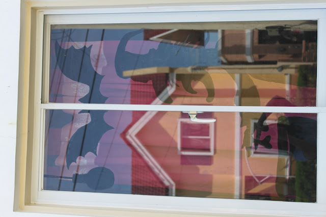 Silhouette of a witch painted in our glass window. I used poster color to paint this. It can be washed off with water if you're curious how will I remove it later on.