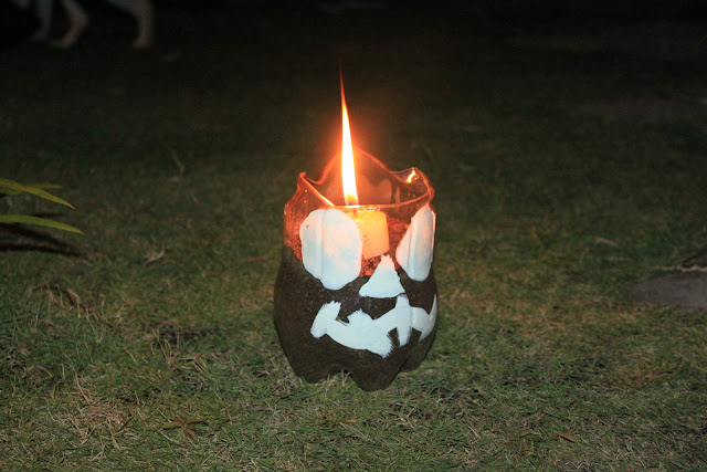 Last minute halloween candle holder made from plastic cola bottles.