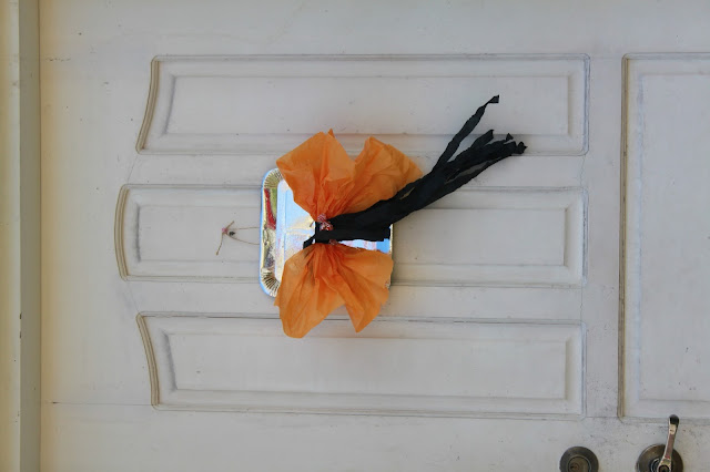 Front door decoration made from paper plate, Japanese paper and crepe paper.