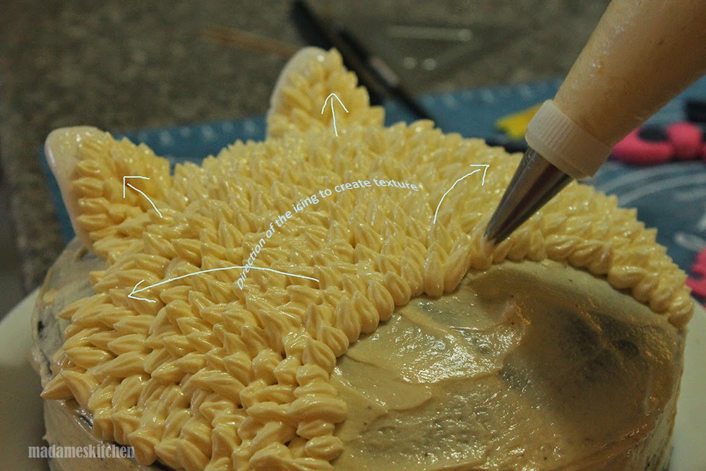 3. When done adding the ears, starts piping it in an upward direction and follow the direction of the arrow of the photo below as indicated.
